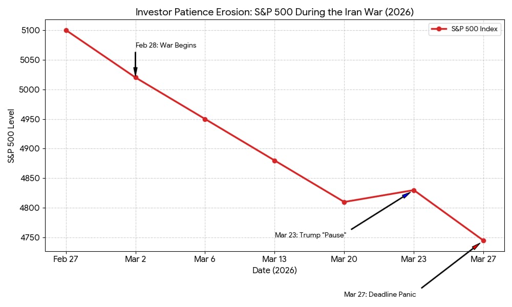 Trading desks are calling it "death by a thousand cuts." Markets whip around 1.3% daily on every headline, only to end up basically flat.
