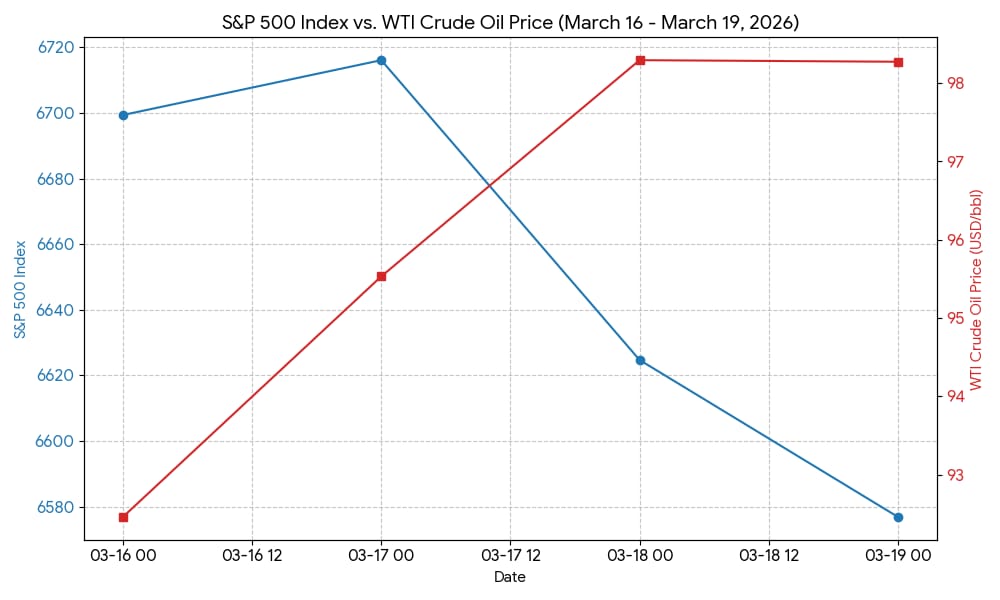 Date | S&P 500 Index $SPX ( ▼ 0.27% ) | West Texas Intermediate Crude Oil Price (USD/bbl) |