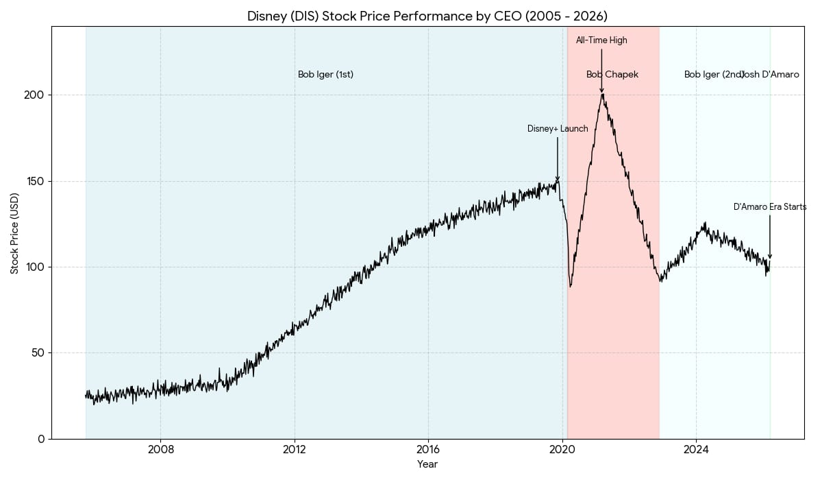 With Disney stock trading at decade-old levels despite the streaming era, D'Amaro's speed-focused strategy faces immediate pressure to deliver results. If it doesn’t work they’ll just bring Bob Iger back in again, I assume. He’s the zombie CEO!