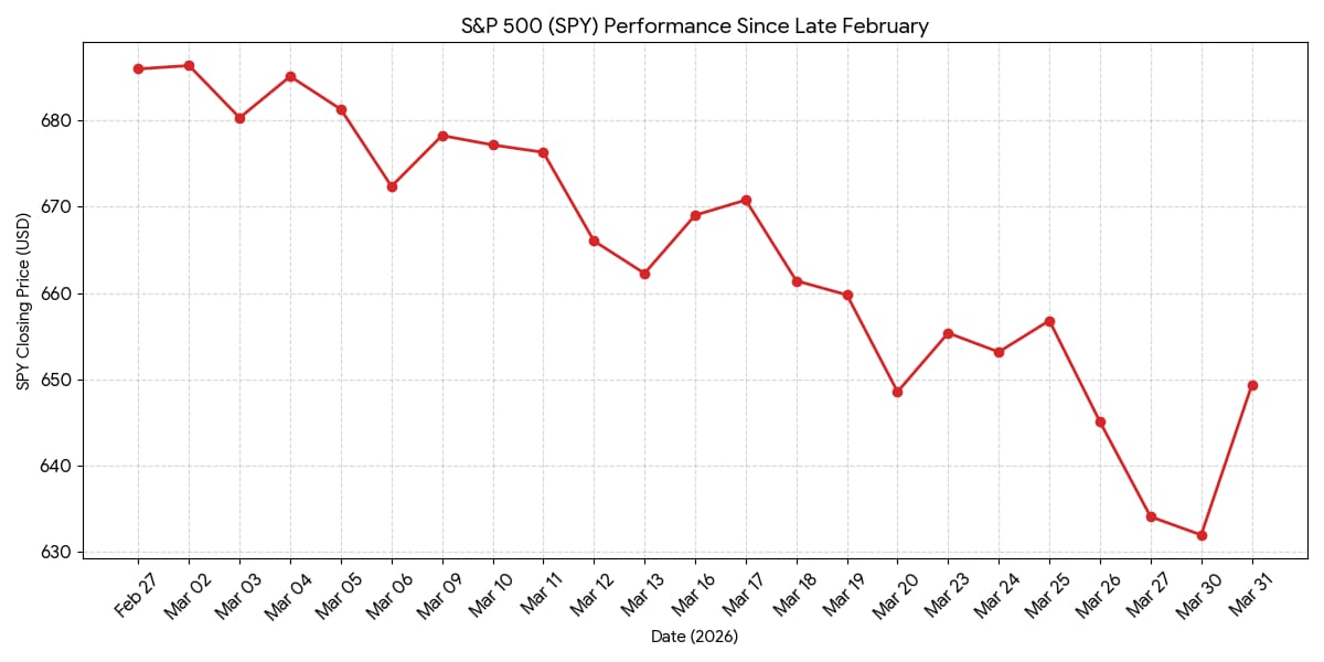 It’s also worth noting that yesterday’s bump represents less than half the market damage done by the war as a whole over the last month: